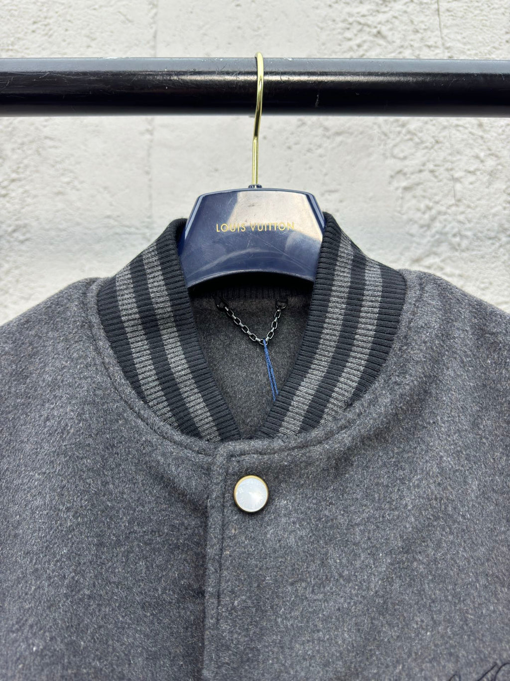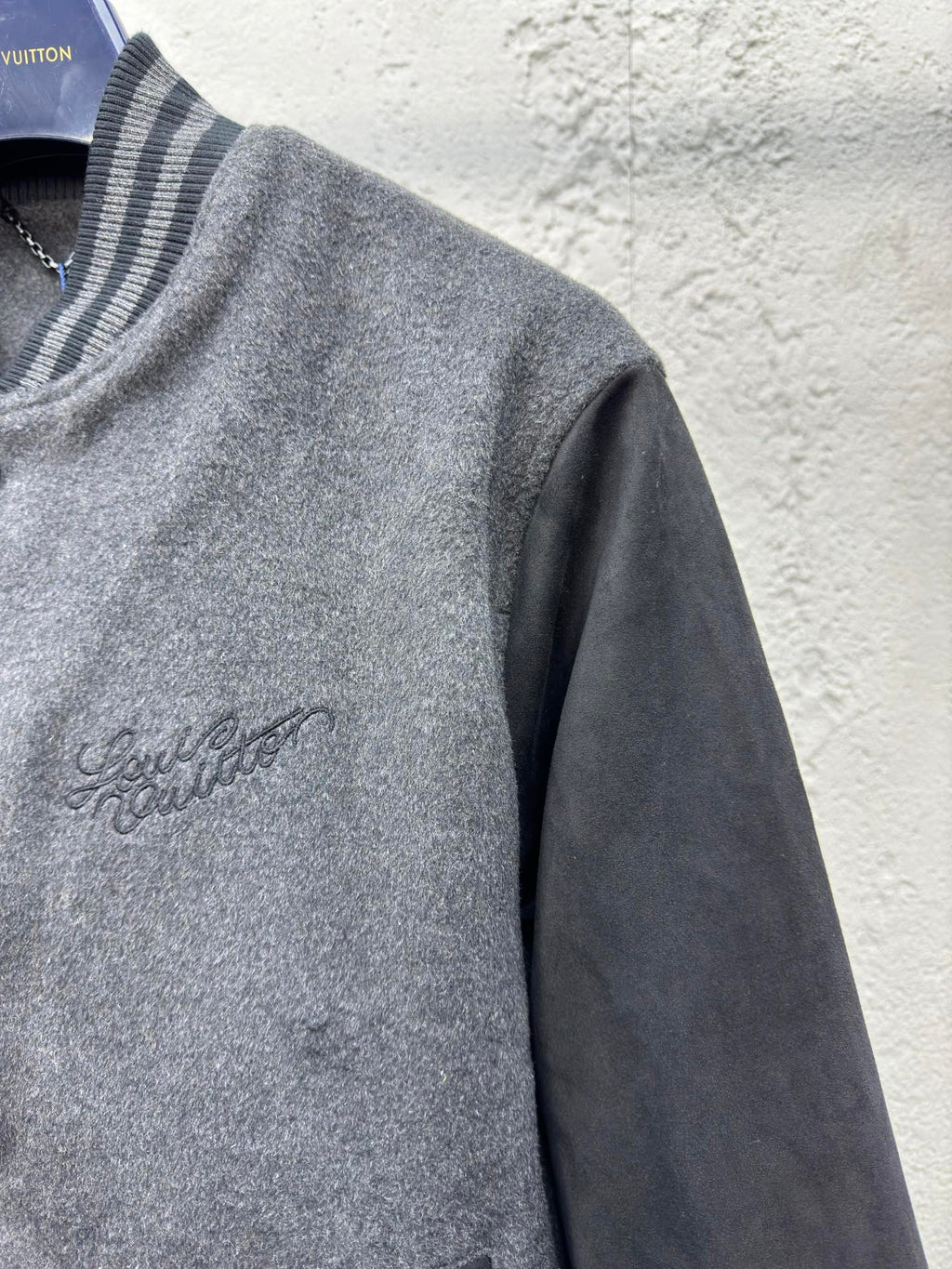 Chaqueta de béisbol Louis Vuitton con paneles de lana bordados.