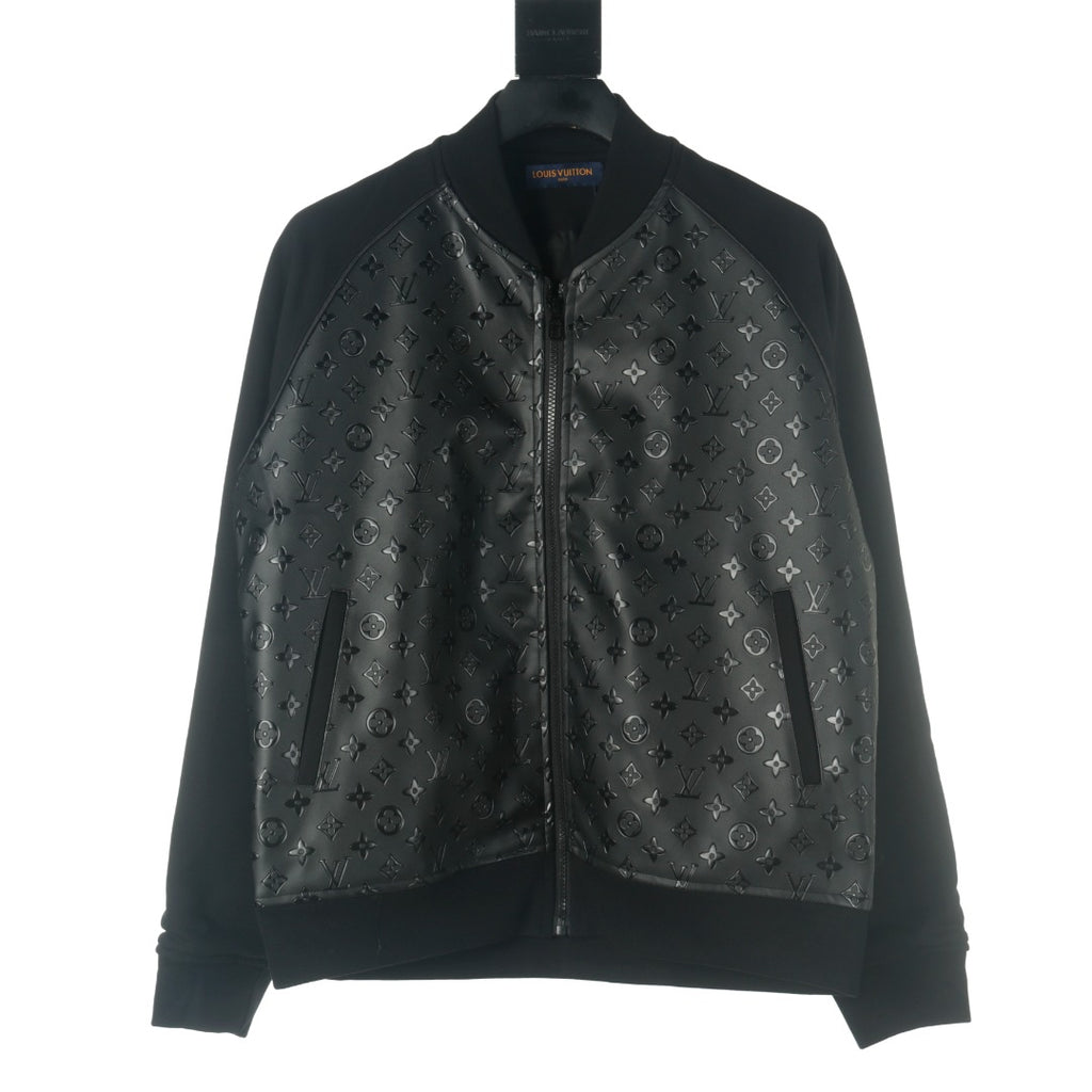 Louis Vuitton LV Full of Old Flowers Logo Chaqueta de béisbol de piel empalmada